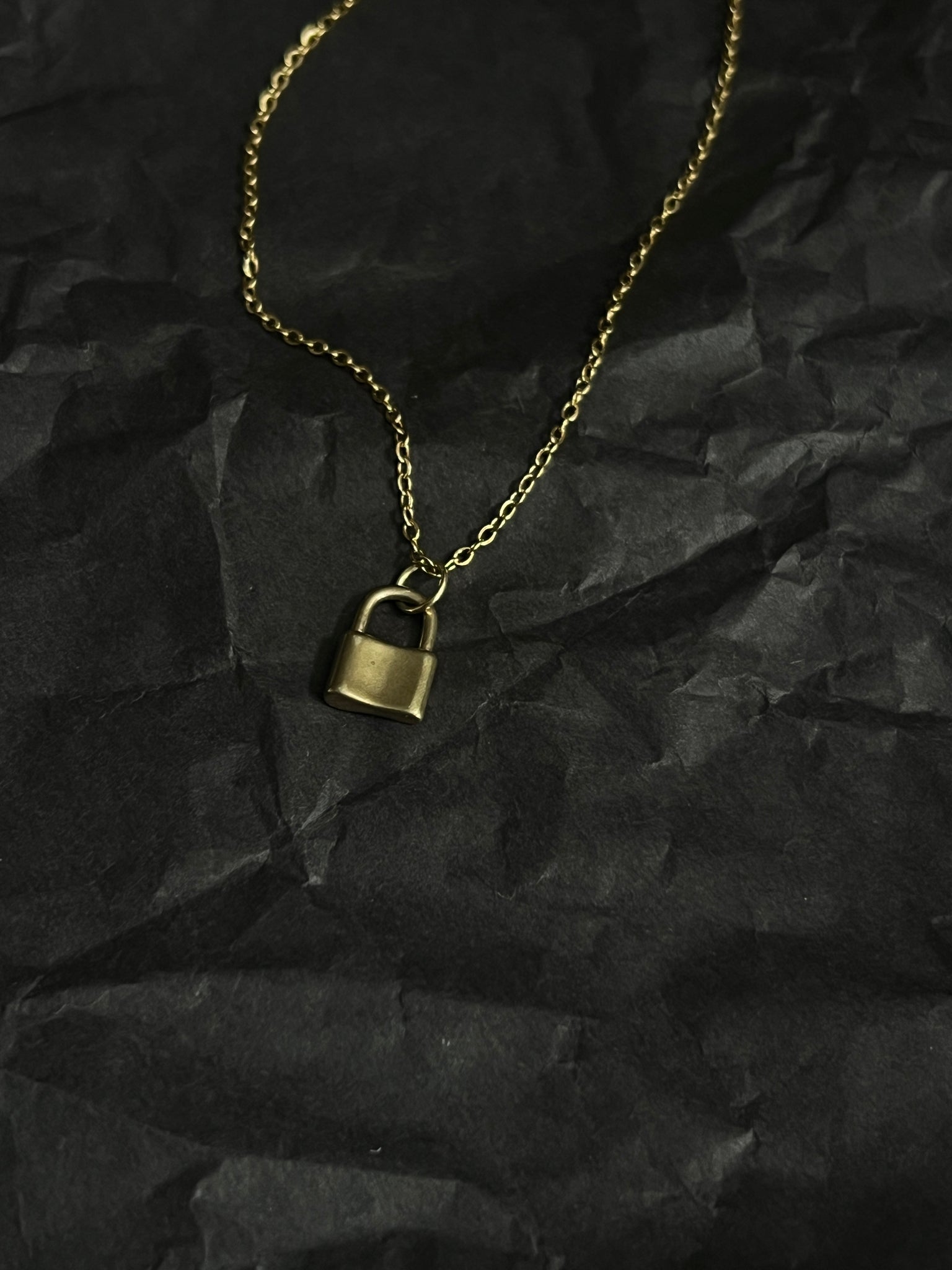 Hangs on gold coated stainless steel chain approximately 18 inch.