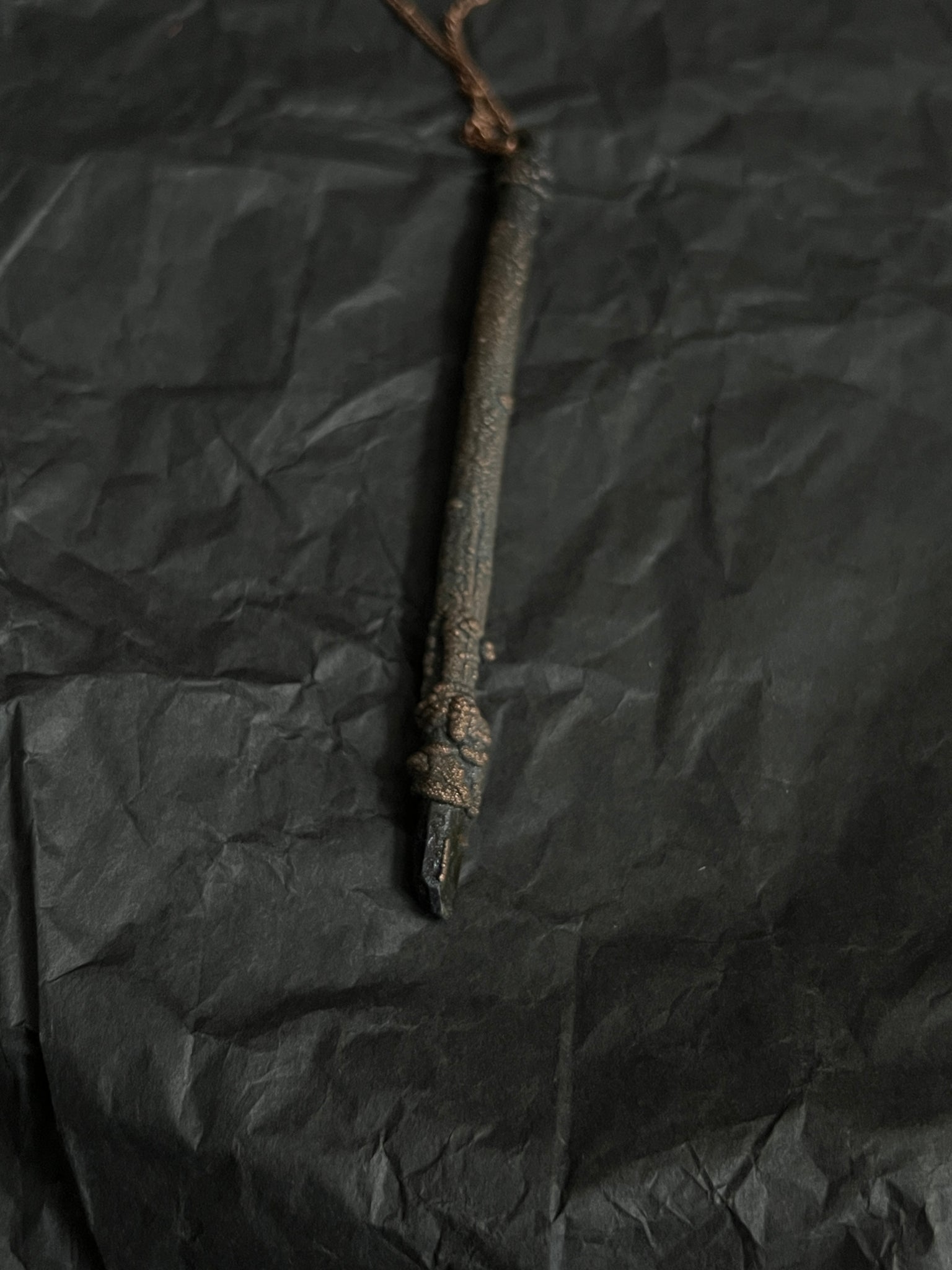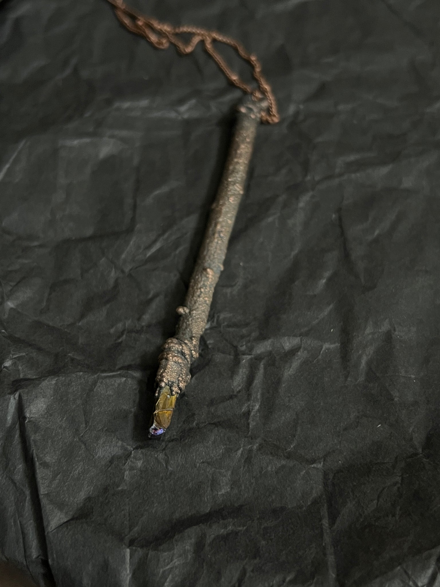 wand is handmade from a natural stick and has been electroformed with copper. This wand features an aura quartz on the bottom