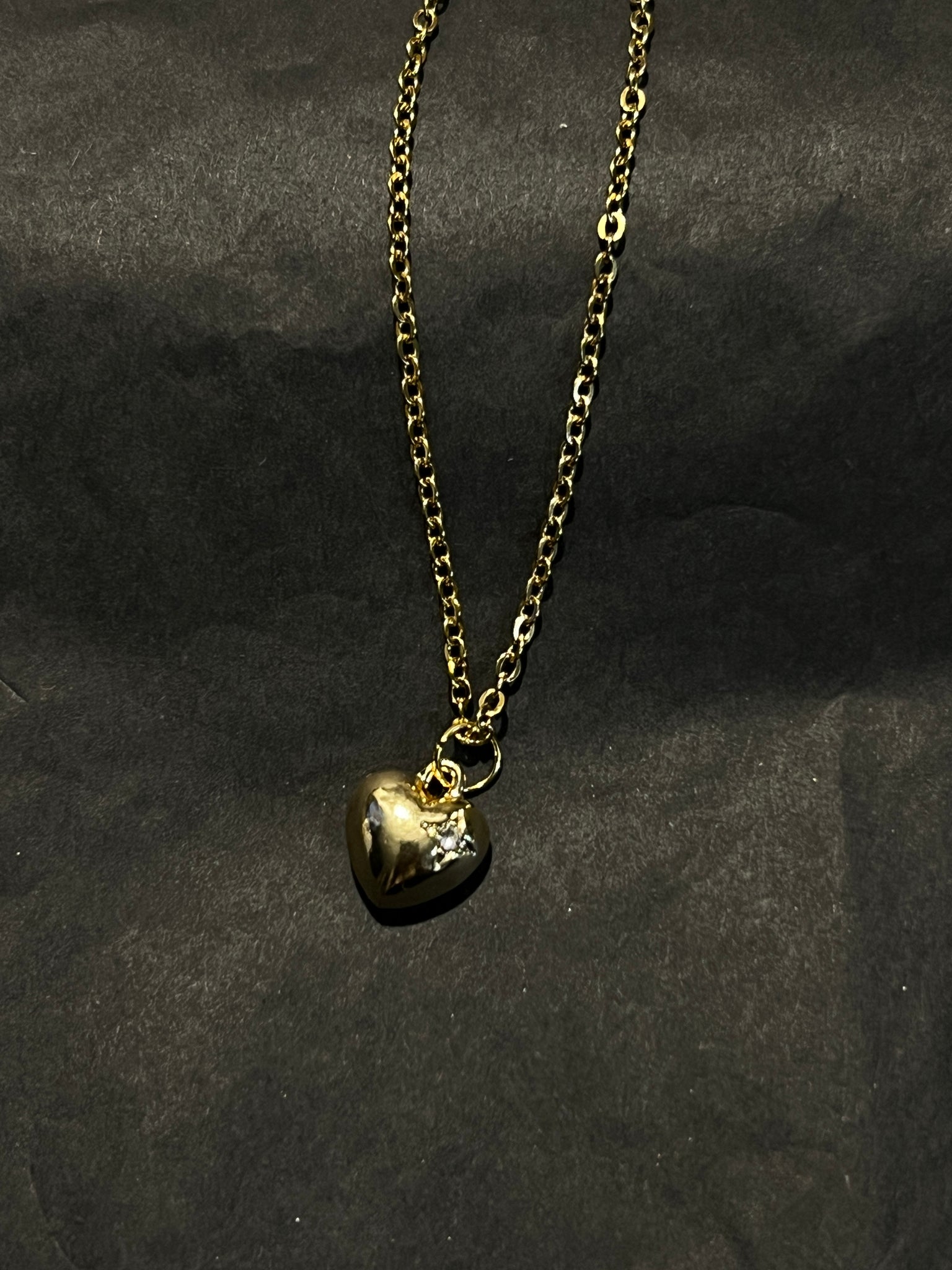 Gold plated heart pendant . Stainless steel gold plated chain approx 20”